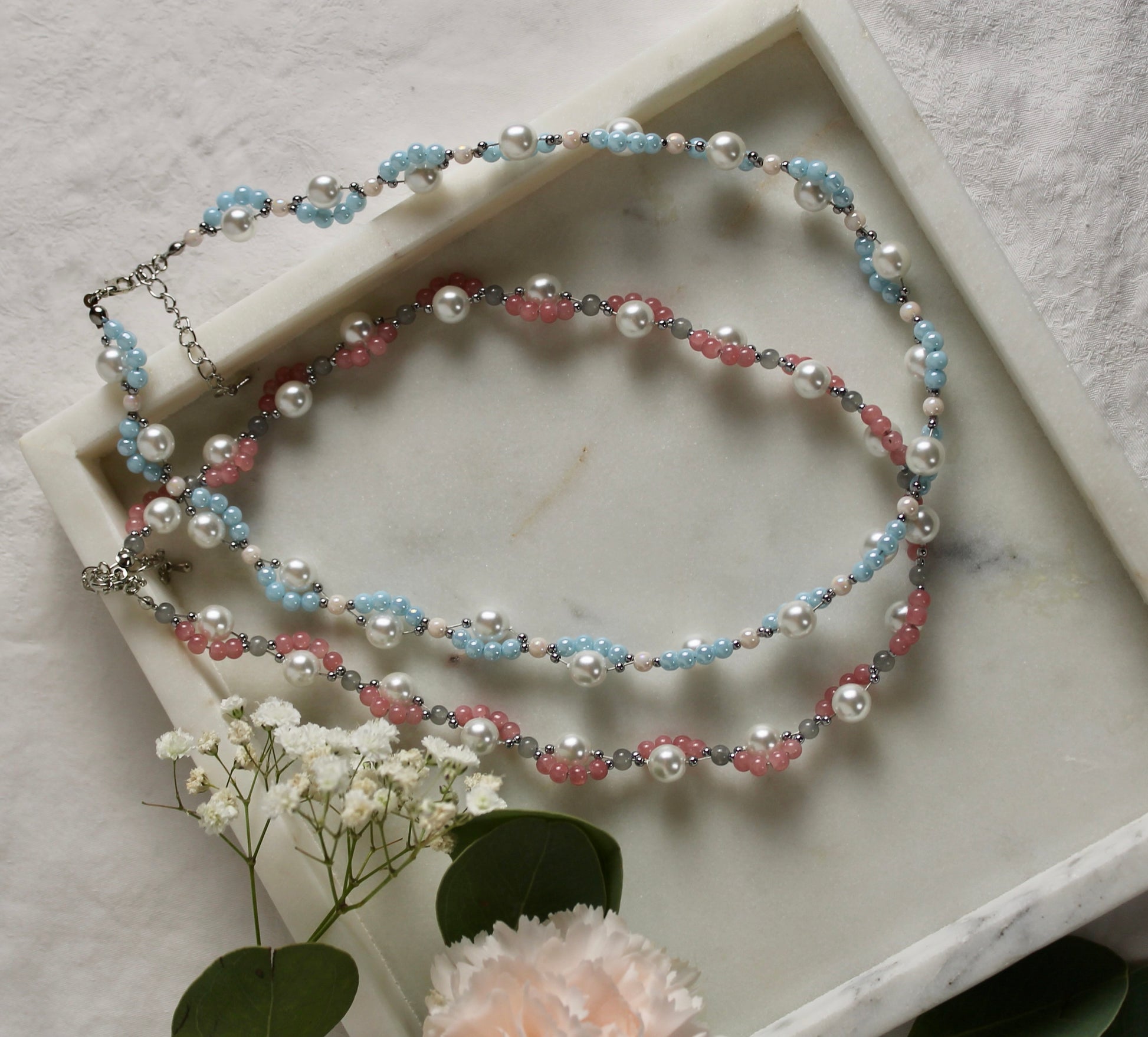 - Pastellfarbene Glasperlen: In zartem Blau oder Rosé für einen frischen, modernen Look.